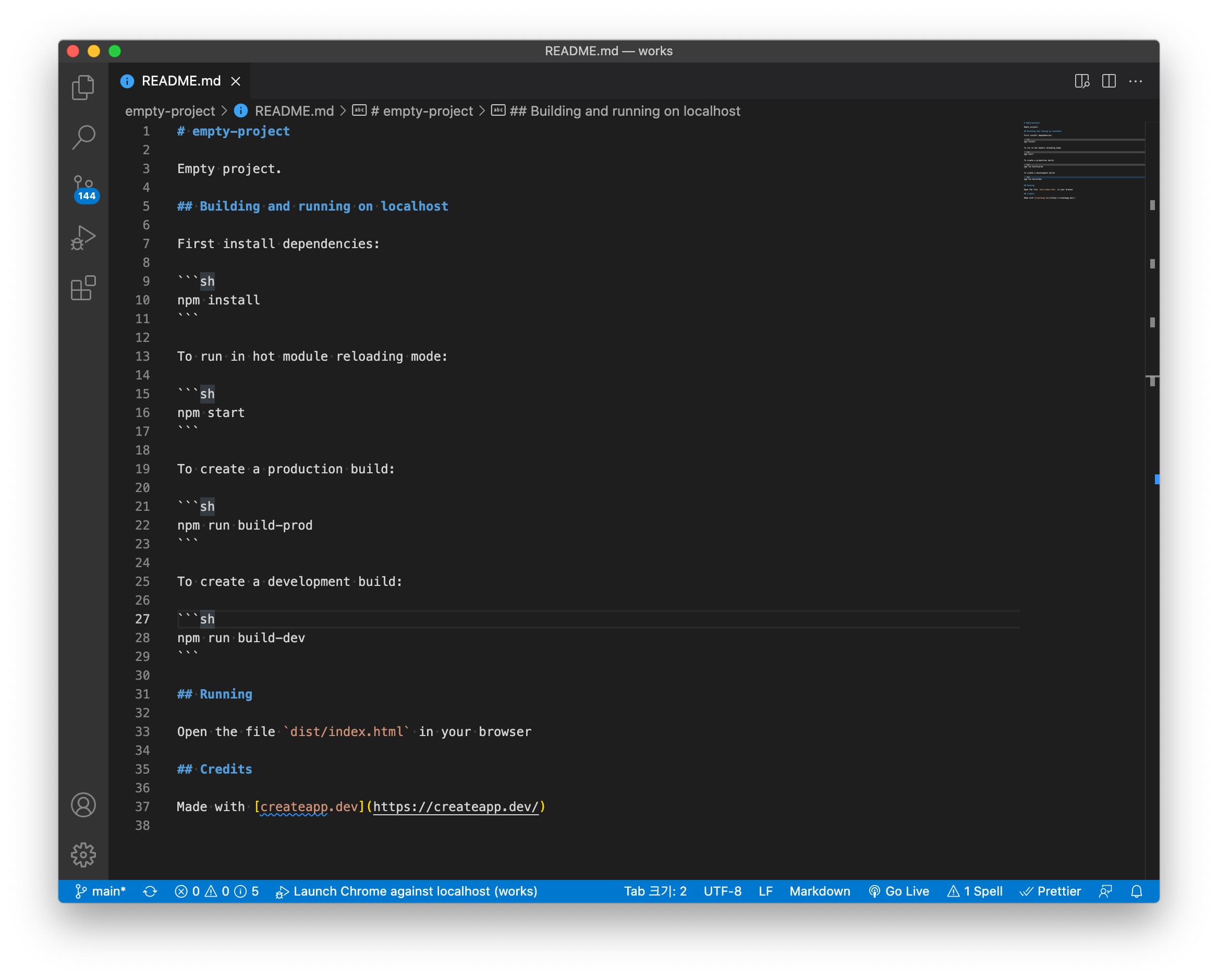 4. 프로젝트 폴더가 생성되면, READ.md 파일을 열어 가이드대로 초기 세팅을 해주면 끝이다.