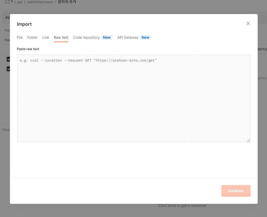 Link 탭에서 import 할 링크를 적고 Continue 버튼을 클릭한다.