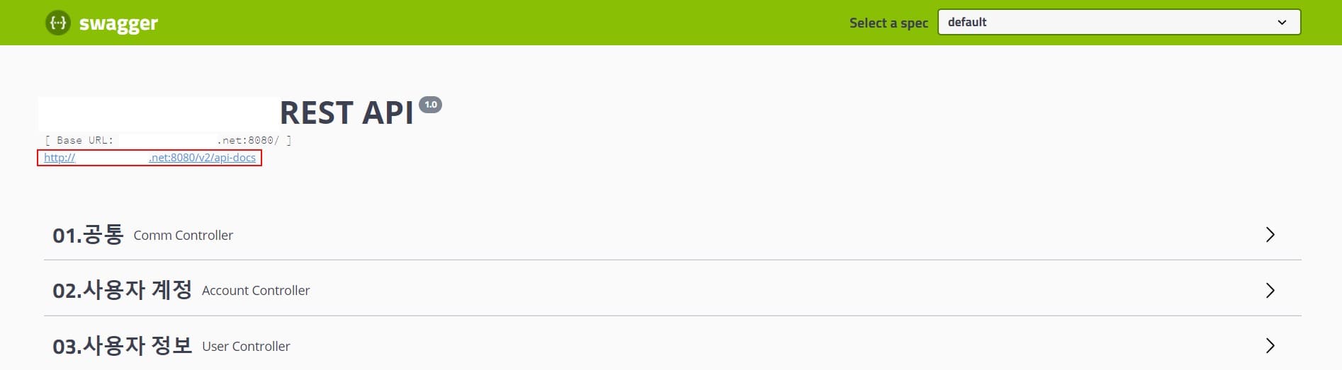 Swagger에서 API 정보가 담긴 JSON 경로를 찾는다. 보통 Base URL 아래에 위치한다.