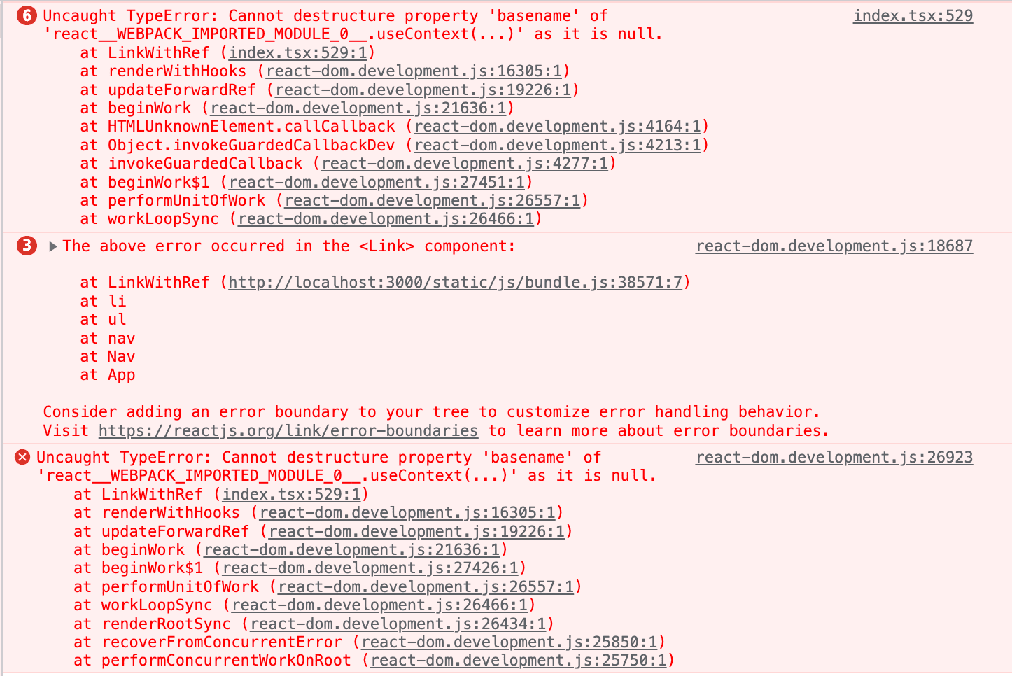 🚫 Cannot destructure property 'basename' of 'react__WEBPACK_IMPORTED_MODULE_0__.useContext(...)' as it is null…