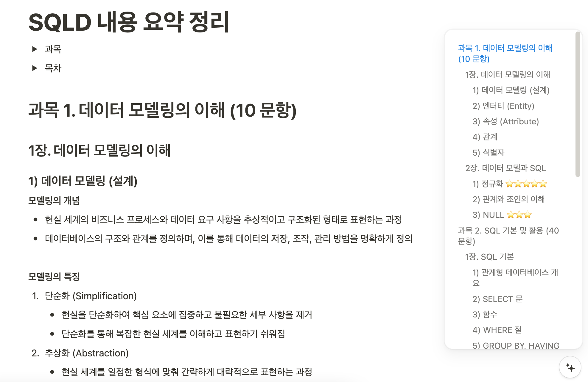 SQLD 과목